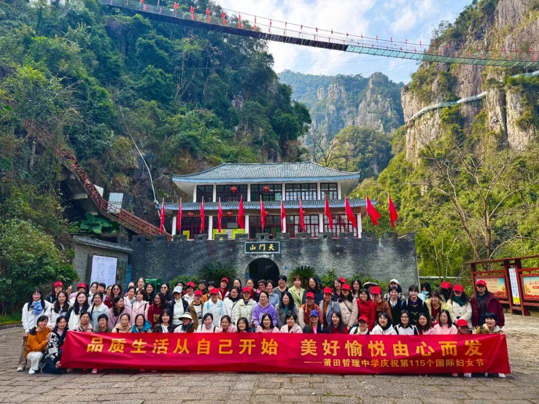)流光溢彩,情醉三八。为了庆祝第115个国际妇女节,我校(哲理中学)工会在绽略加(莆田)文化传播有限公司大力协助下,特别策划了“品质生活从自己开始,美好愉悦由心而发”的节日活动,组织女教职工前往永泰天门山一日游。活动得到了老师们的积极响应和踊跃参与。