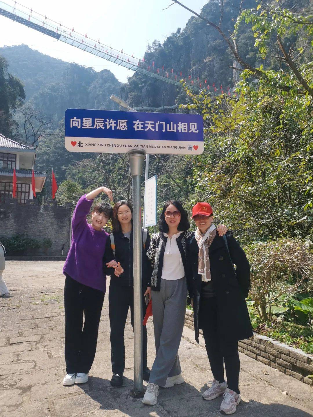 39日上午745,在学校工会的带领下,报名参加的女教职员工齐聚学校西大门,乘车出发前往天门山景区。约930分,顺利抵达永泰天门山大峡谷生态景区。